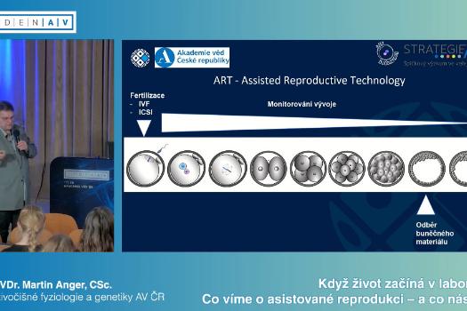 V rámci Týdne Akademie věd ČR vystoupil doc. Martin Anger z Ústavu živočišné fyziologie a genetiky AV ČR s přednáškou Když život začíná v laboratoři, která přinesla ucelený pohled na současné i budoucí možnosti asistované reprodukce (ART).
