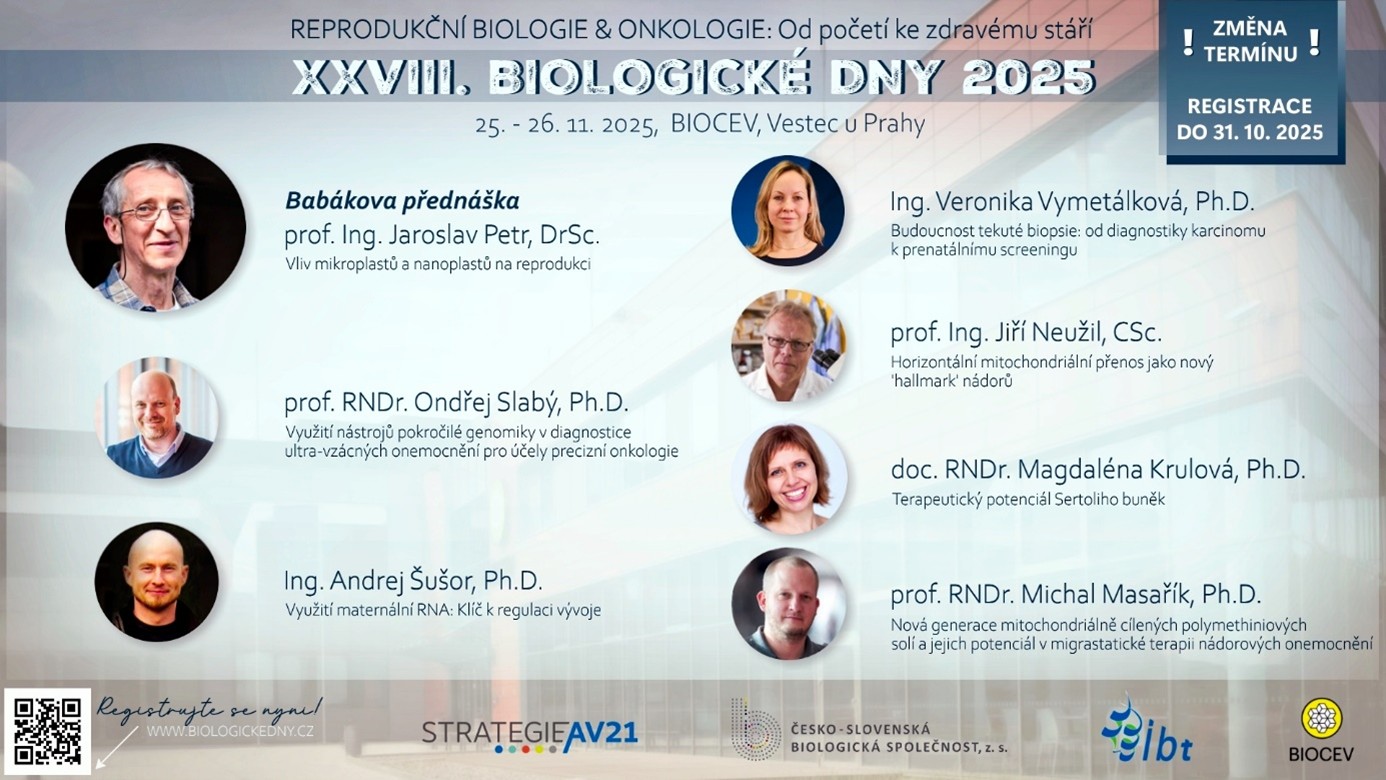Registrujte se na konferenci 28. Biologické dny 2025, s tématem "Od početí po zdravé stáří”, která se uskuteční ve dnech 25. - 26.11.2025 v areálu BIOCEV.